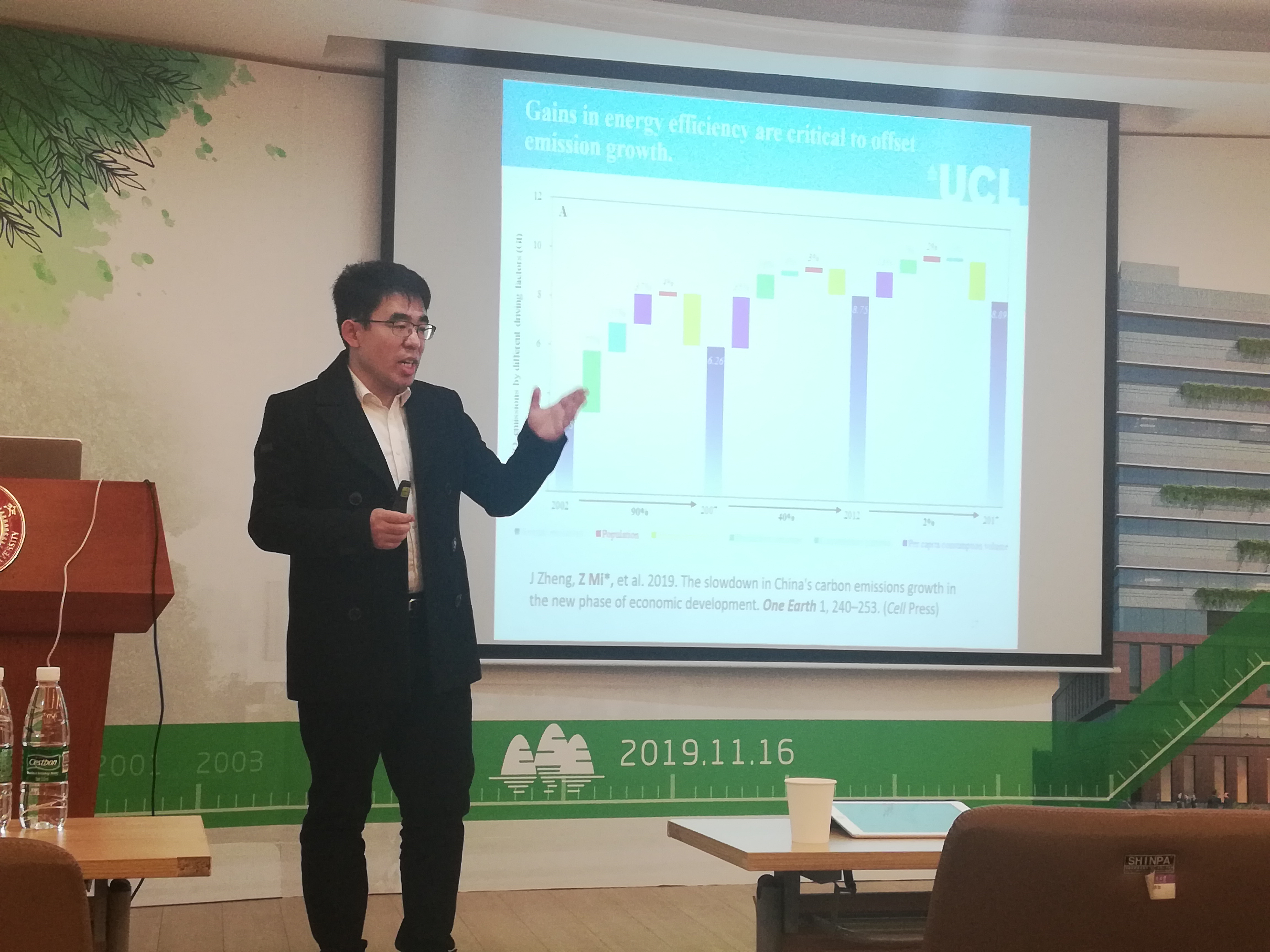 2019年12月24日,应在线直播 靳强研究员邀请,英国伦敦大学学院(UCL)助理教授米志付博士于环境科学楼二楼报告厅为交大师生带来题为“China’s carbon emissions in the new economic development phase” 的精彩学术报告。