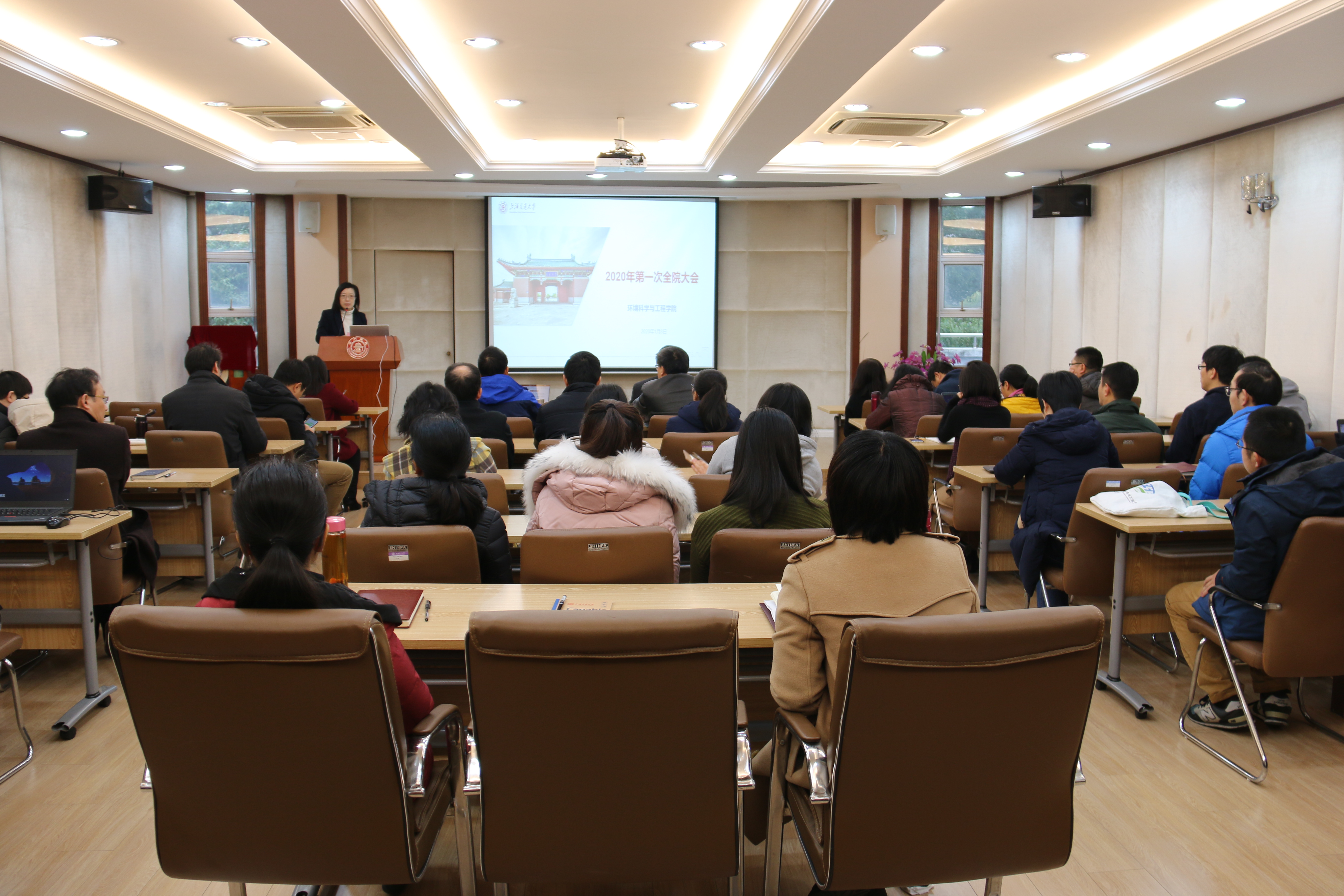 1月8日上午,在线直播 2020年度第一次全院大会在学院报告厅召开,学院党政领导班子、全体教职工参会。