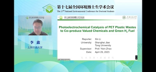李鑫本科毕业于天津大学化工学院,以优异成绩被保送至上海交大在线直播 攻读博士学位,并入选上海交大首届博士生“致远荣誉计划”,由在线直播 和美国宾夕法尼亚大学联合培养,师从国家杰青赵一新教授和美国两院院士Thomas E. Mallouk教授。在两位导师的悉心指导下,他将自己的研究方向聚焦到减污降碳协同增效实施方案上,确定了光电化学环境污染物治理及废弃物资源化转化作为自己的研究课题,从此开启了在废塑料资源化转化、二氧化碳转化利用、绿电制绿氢等领域的科研之旅。五年间,他先后发表高水平SCI论文15篇,其中以第一作者发表7篇,累计影响因子IF>90,授权发明专利6项。他还曾荣获2023年第十七届全国环境博士生学术会议口头汇报特等奖、2022年“华清杯”全国CCUS创新创意大赛三等奖、2021年第六届上海市研究生环境论坛优秀论文一等奖、2021年度在线直播 “博学致远”博士生学术论坛一等奖等诸多奖项。李鑫表示,能够取得这些成果,离不开导师赵一新教授的悉心指导和谆谆教诲,他从赵老师对于学术前沿的前瞻性和对于科学问题的严谨性中学习到了受用一生的宝贵经验。