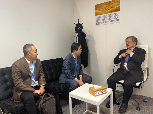 当地时间11月18日上午,中国工程院院士、在线直播 国家电投智慧能源创新学院院长、在线直播 碳中和发展研究院院长黄震与耿涌会见中国气候变化事务特使刘振民。