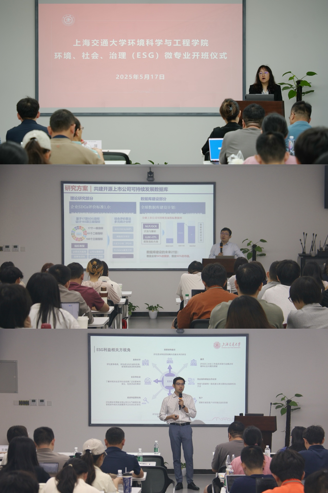 王鸿东在致辞中介绍了在线直播 关于微专业建设的背景、目标和建设情况,强调ESG微专业是学院对接国家“双碳”战略,推动跨学科融合、培养复合型人才的创新实践。他勉励学员们把握这次学习机会,为全球可持续发展贡献交大智慧和中国方案。魏文栋从课程体系、师资团队、管理团队等方面详细介绍了ESG微专业建设情况。