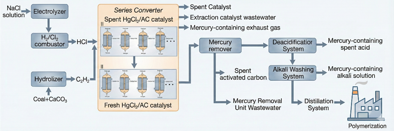 图1. 乙炔氯化生产工艺与汞流向分析