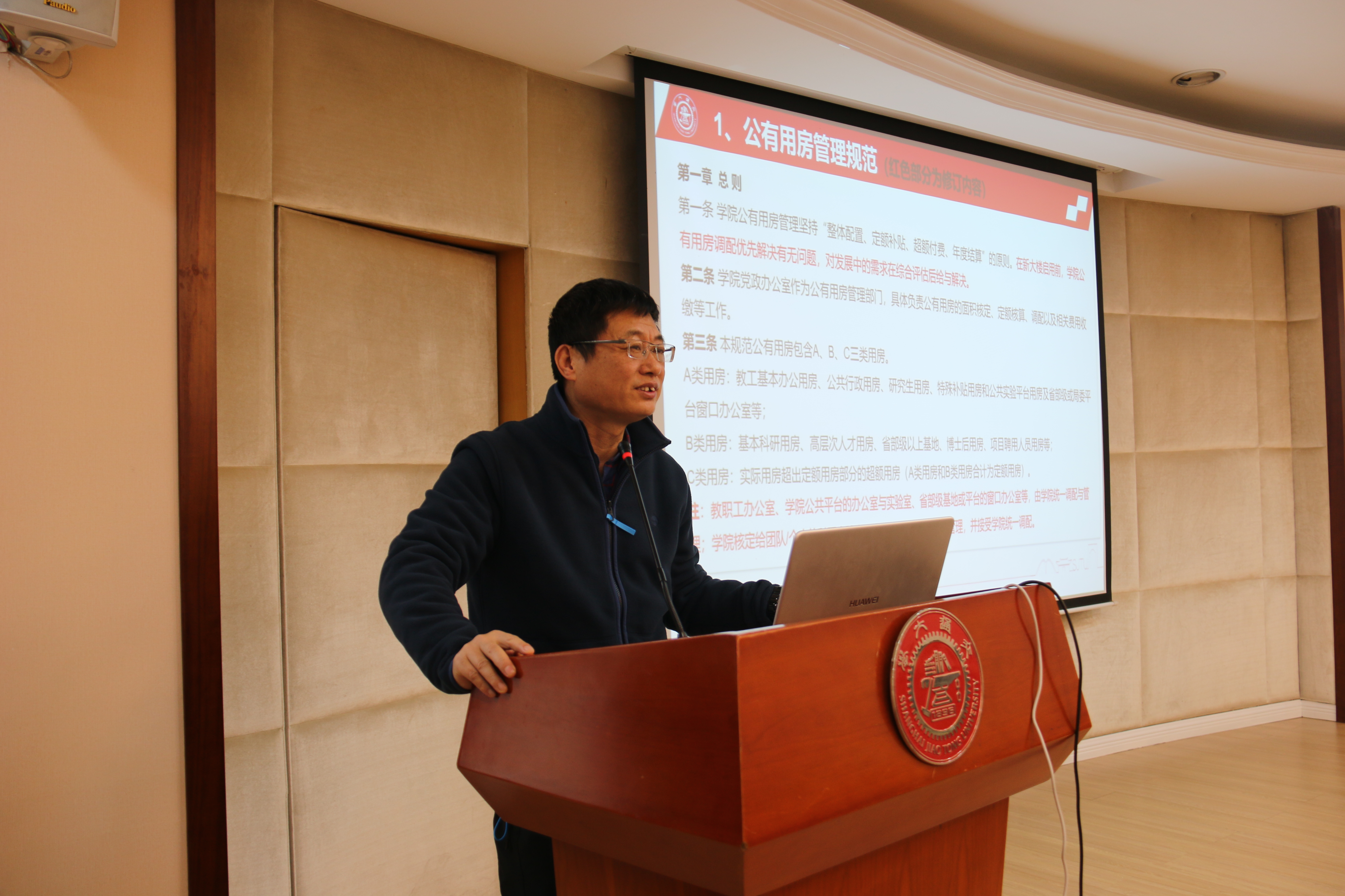 副院长许振明向与会人员介绍了在线直播 公有用房管理规范、实验室安全管理奖惩机制及实验室大型仪器设备资源共享管理办法。