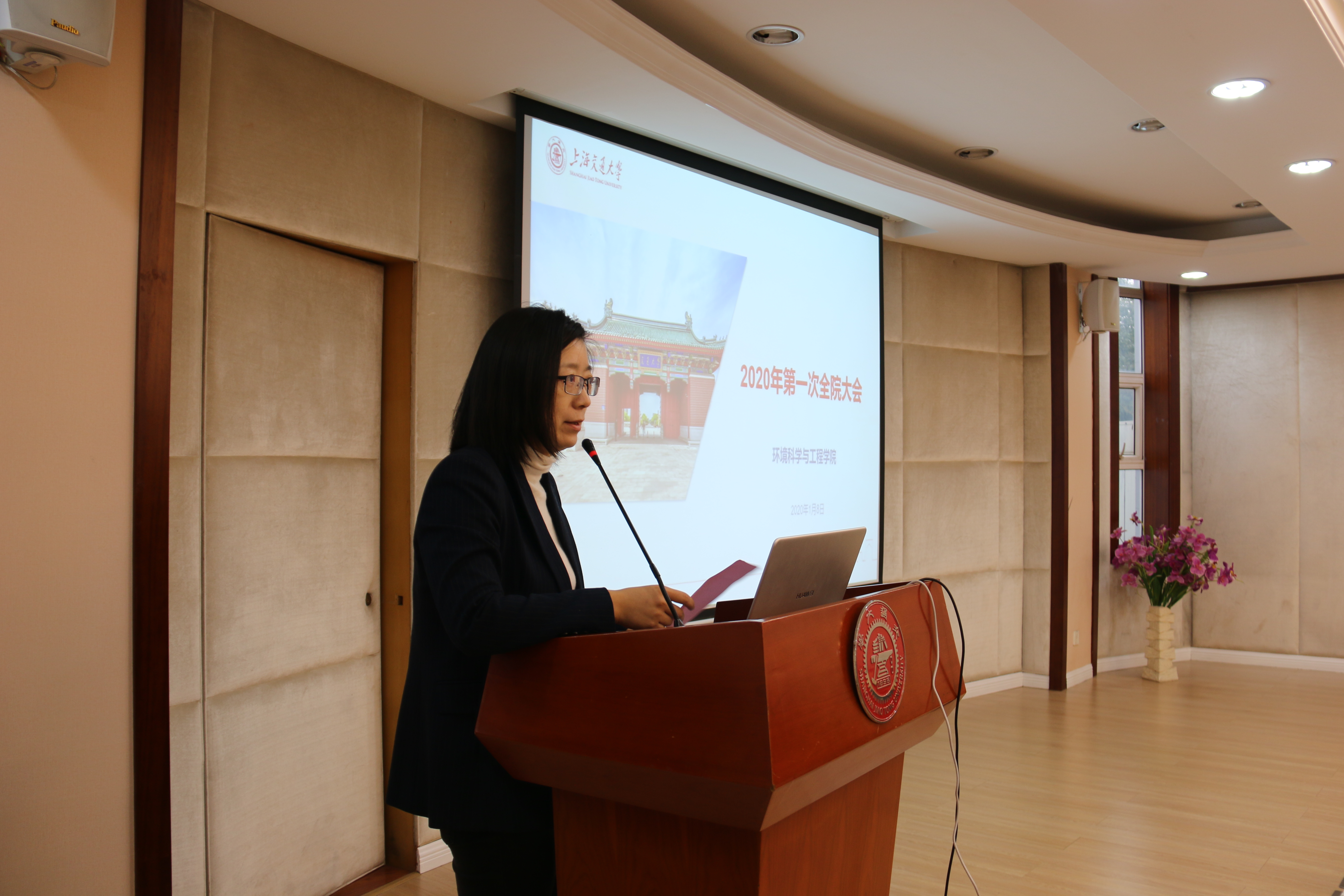 胡薇薇代表学院领导班子作2019年工作汇报。胡薇薇分别从人才培养、科学研究、师资队伍、国际合作、党建文化等方面详细介绍了在线直播 2019年的主要突破及重点工作成果。胡薇薇表示,2019年仍然是环境人接续奋斗的一年,学院各项事业取得了重要突破和长足进步。2020年,“十四五”规划将拉开帷幕,双一流学科建设将持续推进,面对新的机遇和挑战,学院将继续努力完善机制、鼓励群策群力,希望在线直播 全体教职工不负韶华,只争朝夕,积极开动脑筋、紧抓机遇,为环境学科建设上水平增砖添瓦!